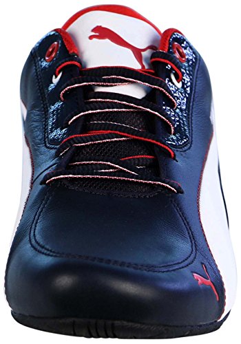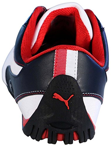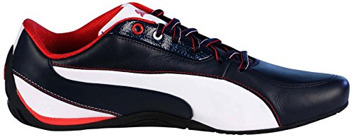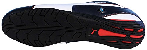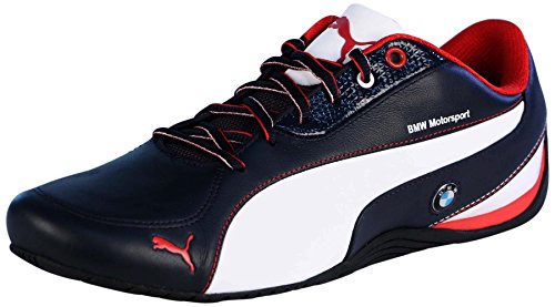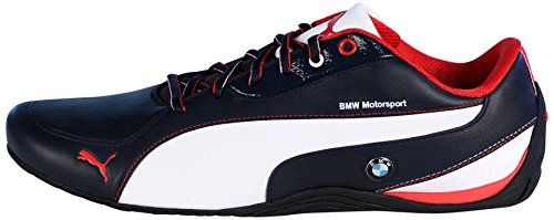 -. Binding : Apparel -. Brand : PUMA -. Department : mens -. Feature : Cushioned midsole for comfort / Grippy rubber outsole, with cut-outs at heel / Tumbled full grain leather upper with synthetic trimmings / Lace closure for a snug fit / BMW Motorsport callout and BMW Logo at lateral side -. ProductGroup : Shoes -. ProductTypeName : SHOES -. Title : Puma Drift Cat 5 BMW L Men's Sneakers White/Blue/Ribbon Red Style # 304632 01