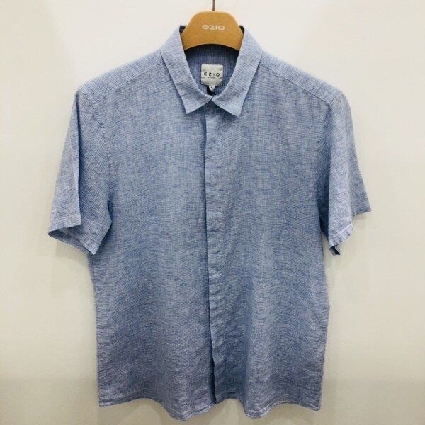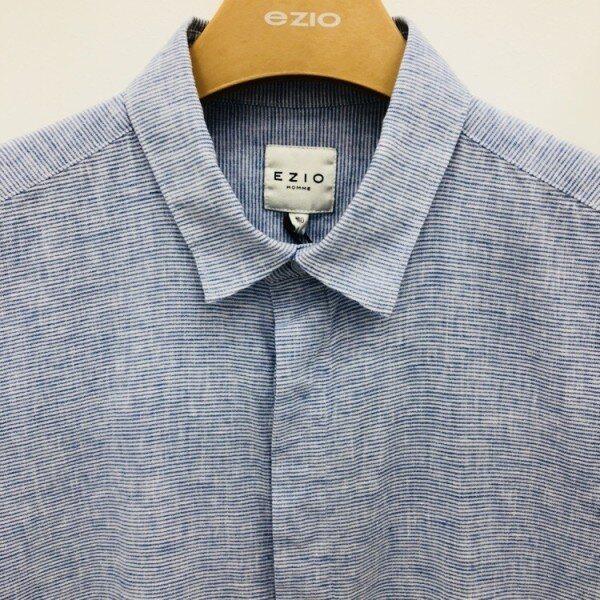 EZIO HOMME 18S/S 블루 마혼방 반팔셔츠 보기만해도 시원한 블루 컬러감으로 캐주얼뿐만아니라 정장바지에도 잘어울리는 스타일의 셔츠입니다