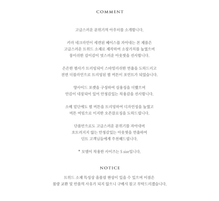 ※ 본 제품은 모델 착용컷보다 컬러감이 다를 수 있으나 이 점은 이 점은 반품 및 교환이 불가하오니