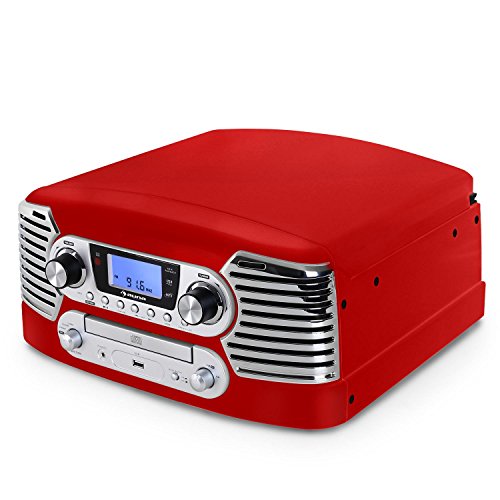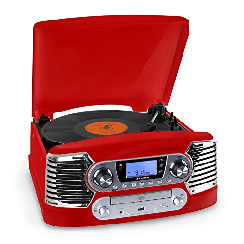 der Auna Turntable einem CD-Player und UKW-Radiotuner auf.