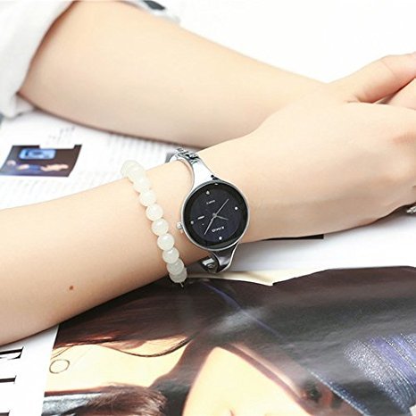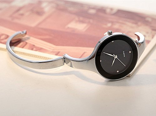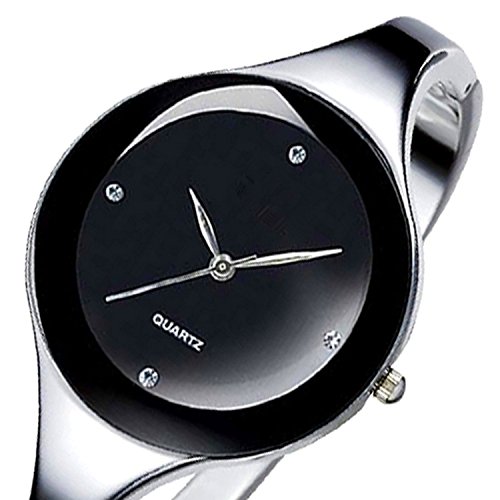 -. Title : Vavna Womens Ladies Stainless Steel Black Dial Bracelet Bangle Wrist Watch Quartz