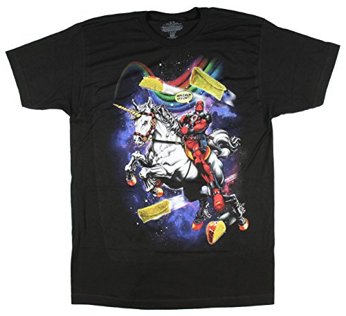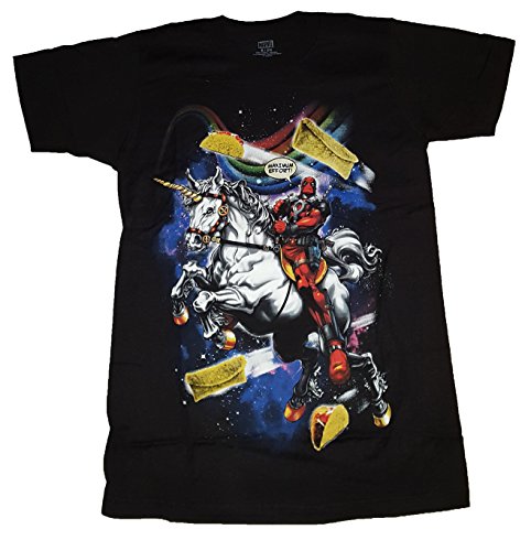 Product DescriptionMarvel Comics Deadpool Riding Unicorn Maximum Effort Graphic T-Shirt0