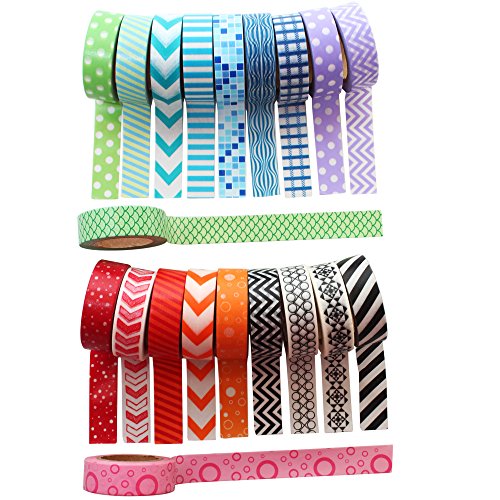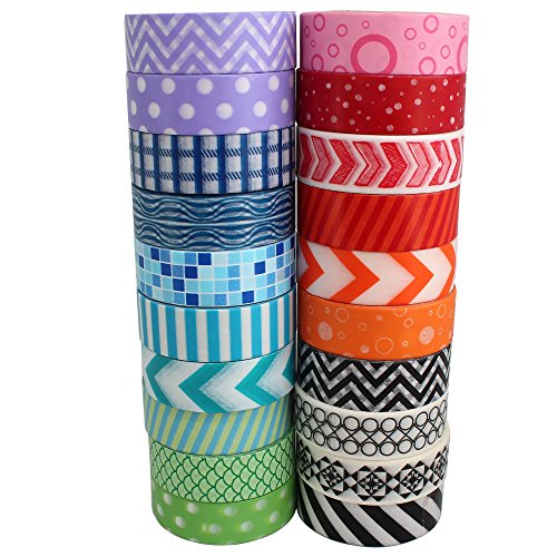Wonderful Washi Japanese Decorative Paper Craft Tape - Geometric Collection ( Set of 20 Rolls)