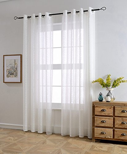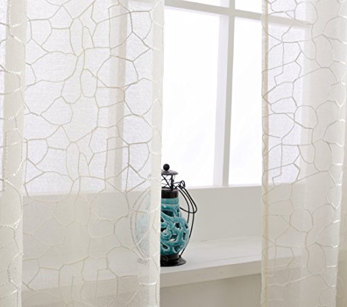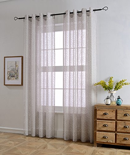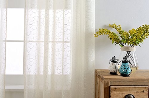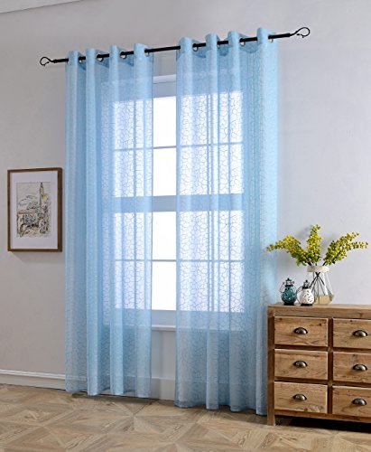 MYSKY HOME Shaylee Stone Embroidery Grommet Sheer Curtains will liven up your indoor or outdoor spaces with a sense of airiness and beauty. 6 Colors, 100% polyester, machine washable. 53x96inches of the dimensions. For a full look use 2 panels to cover a standard size windows. Due to differences in computer monitors, we can not be responsible for variations in color between the actual product and your screen.Feature