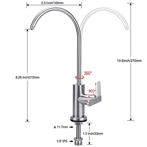 - DRINKING WATER FAUCET: Food grade SUS 304 stainless steel will not rust, lead-Free, safety and healthy guaranteed.