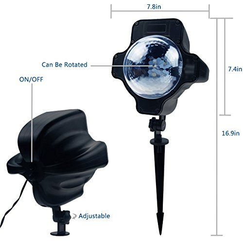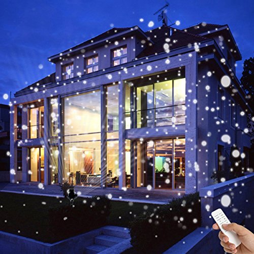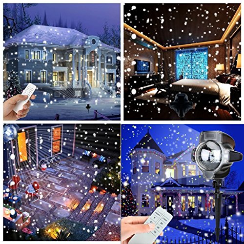 Christmas Laser Lights- The most romantic light ever! Rotating white spots which shows like flurries falling down from the dark sky to create a realistic snow scene which is unforgettable,perfect design for christmas halloween party weedding holiday garden lanscape valentine's day decoration.