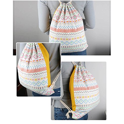 Cotton Canvas Drawstring Backpack,With Inside Pocket,Shoulder Bag Daybacks