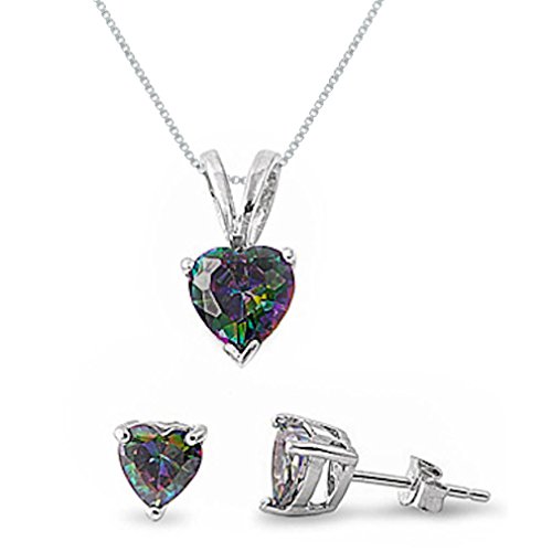 -. Title : Sterling Silver Simulated Rainbow Topaz Heart Necklace and Earrings Set