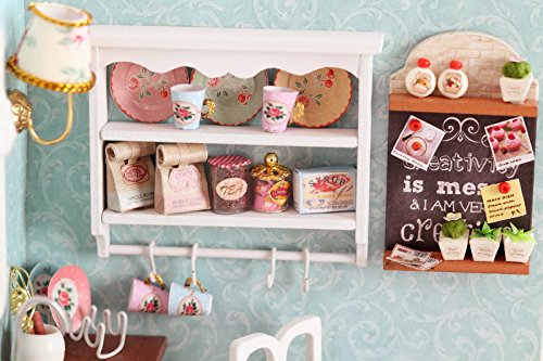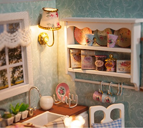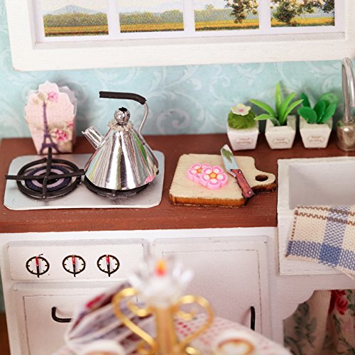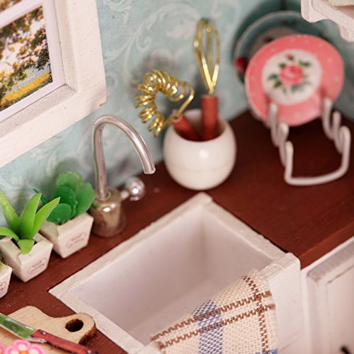 -. Title : Ogrmar Wooden Dollhouse Miniatures DIY House Kit With Cover and Led Light-Happiness Kitchen
