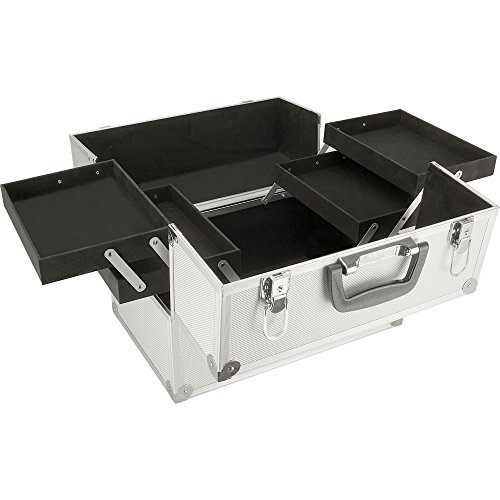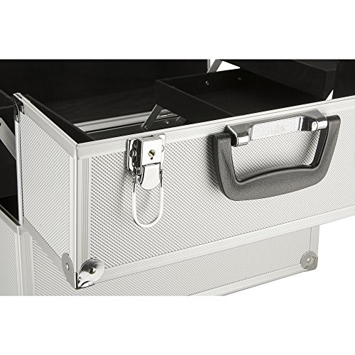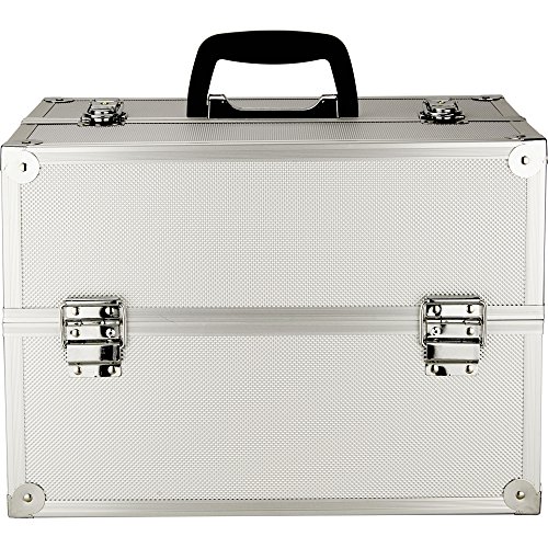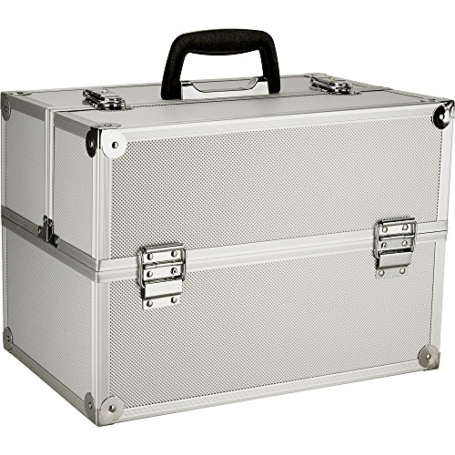 JustCase 4-Tiers Extendable Trays Professional Cosmetic Makeup Case, Silver Dot