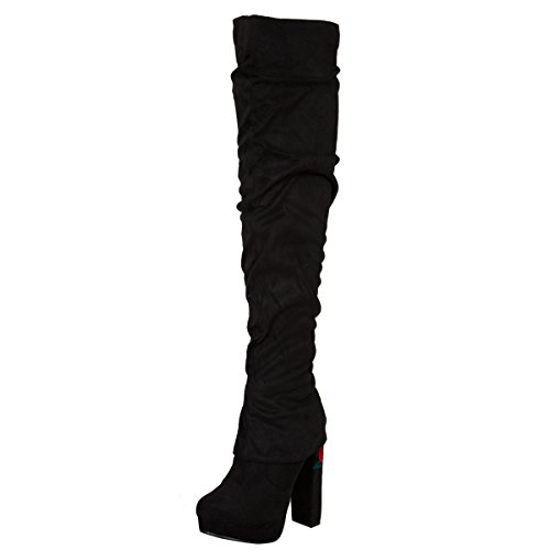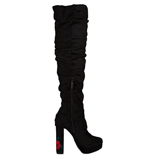 (Nature Breeze)/Women's/Boots/DIRECT FROM USA/Nature Breeze Womens Slouchy Red Rose Embroidered Heel Platform Over The Knee High OTK Boot