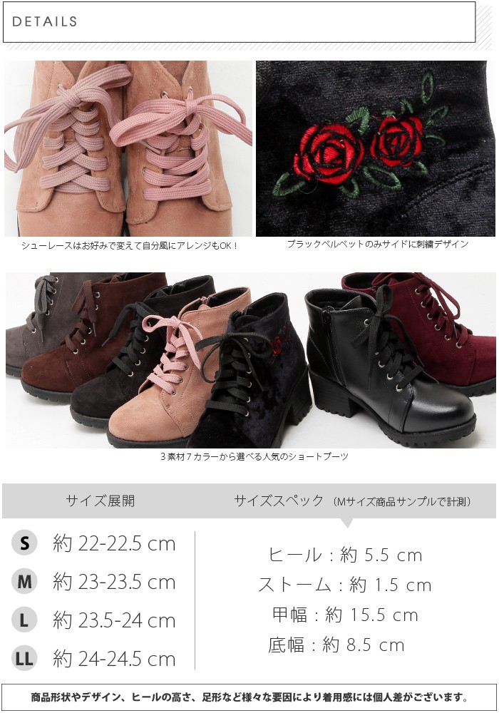 | カラー | 01. ブラックスムース 02. ブラックスエード 03. ダークブラウンスエード 04. グレースエード 05. ワインスエード 06. ピンクスエード 07. ブラックベルベット |