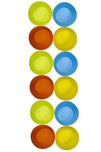 -. Title : Reusable Silicone P.R.Imary Color Cupcake Liners - Assorted 4 Inch Round - 12 Pack