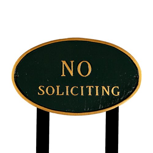 Montague Metal Products SP-11L-HGG-LS Large Hunter Green and Gold No Soliciting Oval Statement Plaque with 2 23-Inch Lawn Stakes