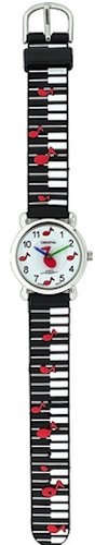 -. Feature : Black Silicone Band / Piano design / Musical note rotates as seconds hand. / Free Organza Pouch - Gift Ready / Geneva children watch