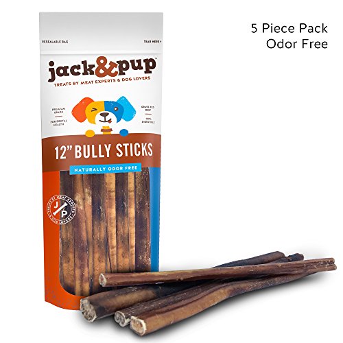 -. Title : Jack&Pup 12-inch Premium Grade Odor Free Bully Sticks Dog Treats [EXTRA-THICK], (5 Pack) – 12” Long All Natural Gourmet Dog Treat Chews – Fresh and Savory Beef Flavor – 30% Longer Lasting