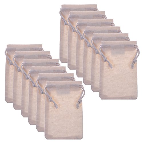 BCP 12pcs 2.75x4 Inch Double Drawstring Cotton Muslin Bags Reusable Bags Tea Bags Souvenir Gift Bag