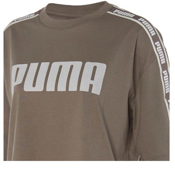푸마 여성용 FD TAPE 반팔티푸마 로고 테이프가 소매에 덧대어진 루즈핏 여성용 반팔 티셔츠.푸마 로고 티셔츠 프린트 테이프가 어깨선을 따라 둘러져 잇고, 가슴에 위치한 PUMA 로고는 소프트하게 프린트되어 여성미와 레트로한 감성을 동시에 표현하는 제품. 앞면은 허리단에 넣을 수 있을 정도의 짧은 길이인 반면, 뒷면 길이는 약간 길어서 다양한 스타일링이 가능한 것이 장점.