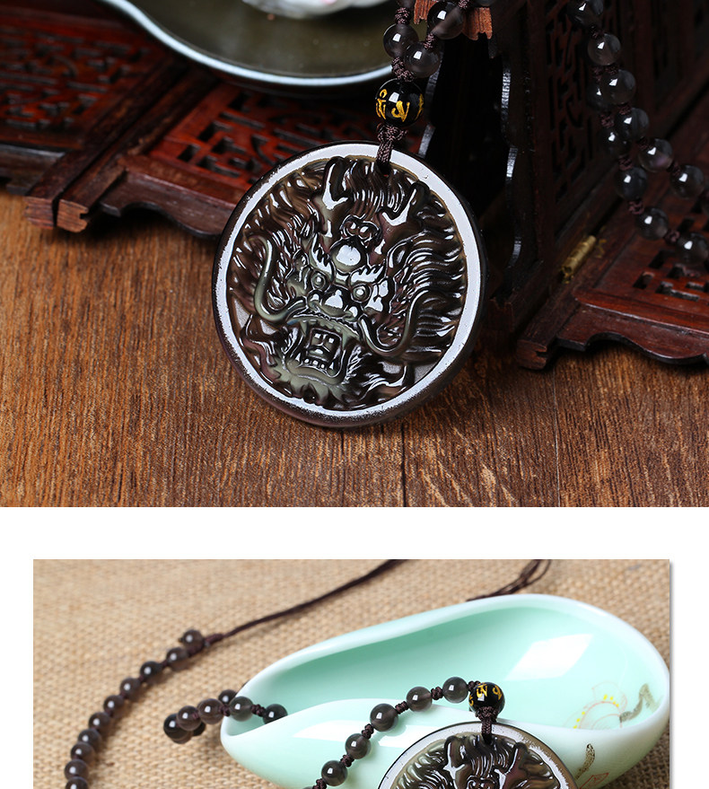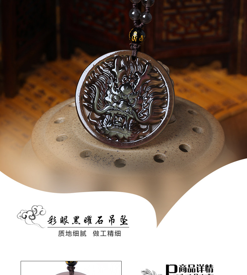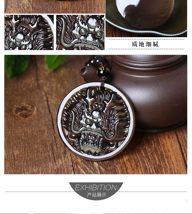 天然冰种彩虹眼黑曜石龙牌黑曜石玄龙望尊吊坠项链