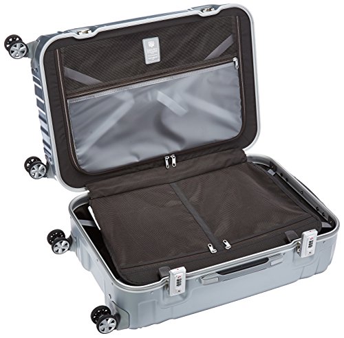 -. Feature : 100 percent polycarbonate / Four multi-directional dual spinner wheels for effortless mobility / Ultra-protective security frame with sealed gasket closure features an integrated tsa combination lock that provides peace of mind when checking cases through security / Deluxe interior featuring two divider panels, two cross-straps and plenty of organizational pockets / 24.0x16.8x11.0