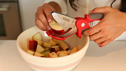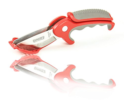 - Feature : COOK WHERE YOU WANT - Cut and toss salad, vegetables right in the pan or bowl. / KITCHEN SCISSORS AND SALAD TONGS IN ONE UTENSIL - Cut tomatoes, cucumbers, peppers, onions, mushrooms and more into even slices quickly and easily. Make amazing fresh chopped salad, salsa, chop fruit and vegetables right in your bowl! / LASTING, COMFORTABLE, CONVENIENT DESIGN - Soft, rubberized handles, for comfortable non-slip grip; Sharp, lasting micro-serrated stainless steel dual blades. Made from from FDA approved food quality, BPA free materials / EASY AND SAFE STORAGE - Lock the handles for easy and safe storage. Dishwasher safe. / RISK FREE SHOPPING - with Amazon's world class 100% A-to-Z Guarantee and Hassle Free Life Time warranty from Comfify, you are protected.