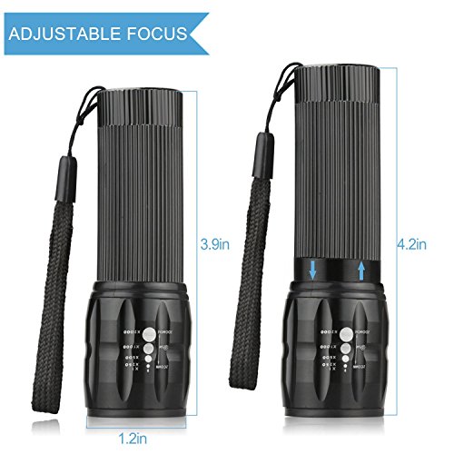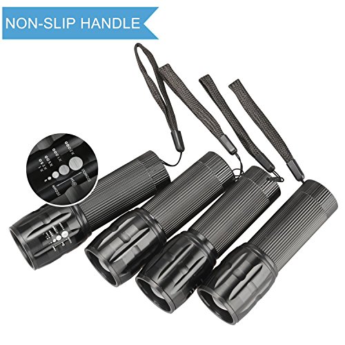 Adjustable Focus Cree LED Flashlight Torch - Super Bright 3 Light Modes - Best Tools for Camping Hiking Hunting Backpacking Fishing and BBQ (Pack of 4)