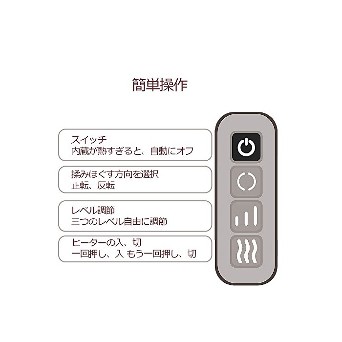 간단 조작:4개의 토의해 옥과 딱딱해진 목의 근육을 풉니다!움직이는 비벼 옥서는 히터 기능 첨부.이것으로 따끈따끈