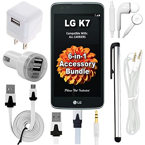 6 Items Package Includes: (1 x) 3.1 Amp USB Car Charger, (1 x) 1 Amp USB Rapid Wall Home Charger, (1 x) USB 3.0 Data Cable, (1 x) HD Stereo In-Ear Headphones Flat Cord Design with MIC and REMOTE, (1 x) 3.5mm Auxiliary Cord, and (1 x) Long Stylus Pen. Includes all 6 items shown in Images. (Phone Not Included). All Products include a 60 Day Hassle Free Return / Exchange Policy. All Products are Brand New and pre tested to ensure Quality.Feature