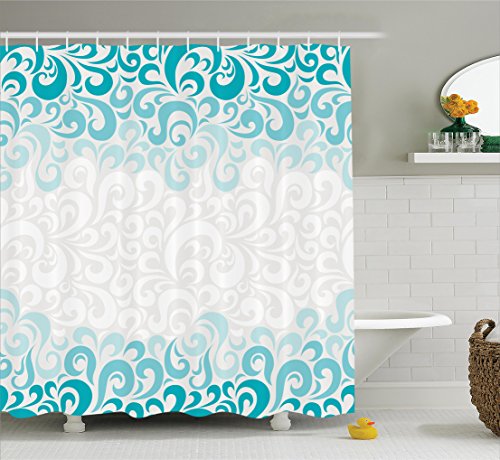Turquoise Decor Shower Curtain Decor by Ambesonne, Abstract Floral Flowers Pattern Ornamental Artistic Design Print, Polyester Fabric Bathroom Shower Curtain, 84 Inches Extra Long, Dark Teal Beige