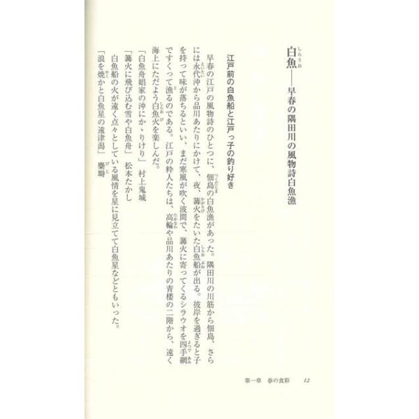 寿司、天ぷら、蕎麦、鰻。江戸時代に誕生した優れた食文化。四季折々の旬の食材を創意工夫して楽しんだ江戸の人々。その歴史や伝説、名前の由来、漁法や栽培法にも触れた日本人の食の世界!