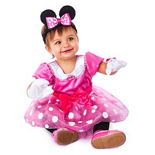 -. Brand : Disney -. Department : girl-baby -. Feature : Authentic Disney Costume / Includes costume, matching gloves and Minnie Mouse ear headband / Dress features sparkling velour bodice with bow at waist / Stretch back with self-stick fabric closure / Attached briefs with snap for easy on and off -. PackageQuantity : 3 -. ProductGroup : Apparel -. ProductTypeName : BABY_COSTUME -. Title : Disney Minnie Mouse Costume for Baby Girls Includes Matching Ears Headband & Gloves