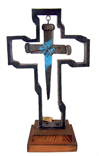 Deleon Iron Standing Cross on Wood Base with Hanging Nail Cross, 11 Inch