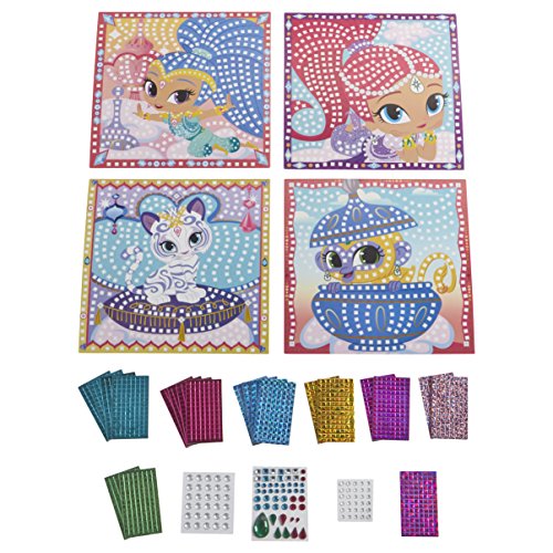Shimmer and Shine Sparkle Mosaics by ALEX Toys is a way to make pictures sparkle like magic. With over 1,600 bright and shiny foam stickers you can bejewel and bedazzle pictures of your favorite characters from the cartoon; Shimmer, Shine, Nahal and Tala! Hang them anywhere you want, to brighten up a room. Includes 4 pictures (8.25in. x 8.25in.), 1,572 peel and stick foam stickers, 51 sticky gems and easy instructions. Recommended for children 4 years of age and older.Feature