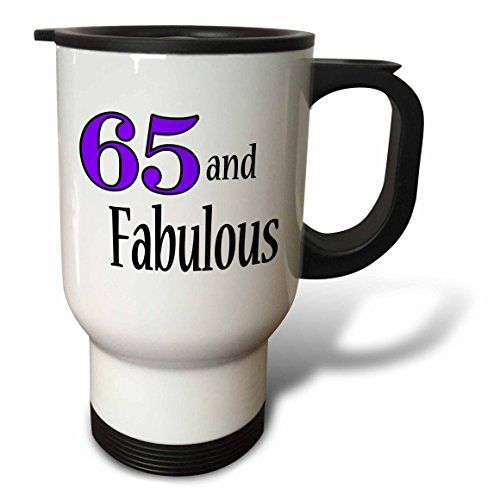 3dRose tm_193427_1 "65 & Fabulous. Purple. Stainless Steel" Travel Mug, 14 oz, Natural