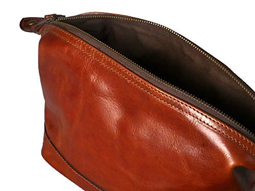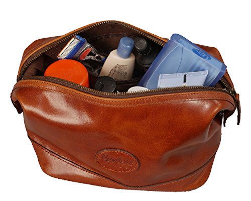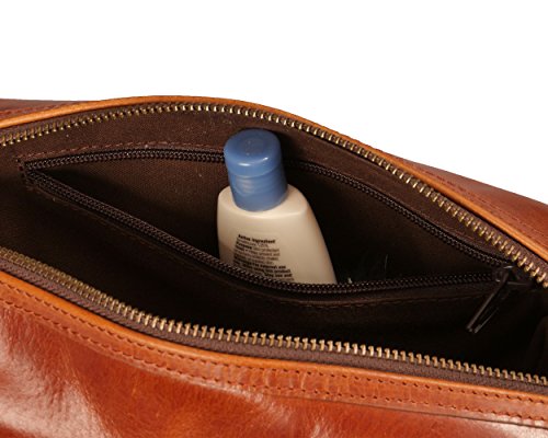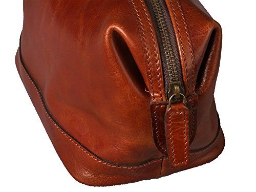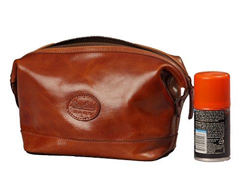 Keep all your grooming essentials at your fingertips with this beautiful genuine leather, vintage look shaving kit for men. Made with high-quality, soft brown leather, this classic travel bag organizer is perfect for the man who has an eye towards luxury at an affordable price. The full-length top zipper allows for easy access to grooming tools in the roomy main compartment. Inside, a 6" zippered pocket securely holds small personal items. This bag will quickly become a favorite travel companion for weekend trips, vacation travel, or to the gym or office. A perfect gift for birthdays, graduation, holidays or special occasions. This durable dopp kit designed for years of use. No shaving supplies or toiletries of any kind are included with this bag, the purchase is for the bag only. 0 |