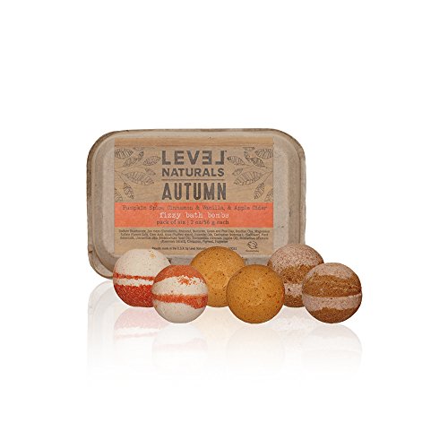 Level Naturals Bath Bombs: Autumn Bath Bomb Variety 6 Pack (2 x Pumpkin Spice, 2 x Cinnamon Vanilla, 2 x Apple Cider)