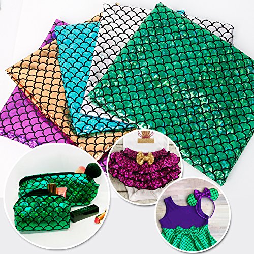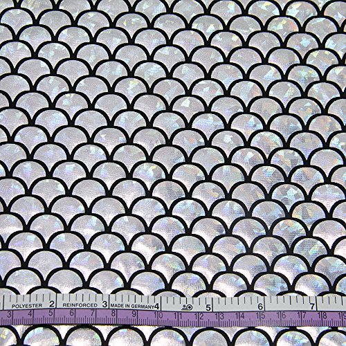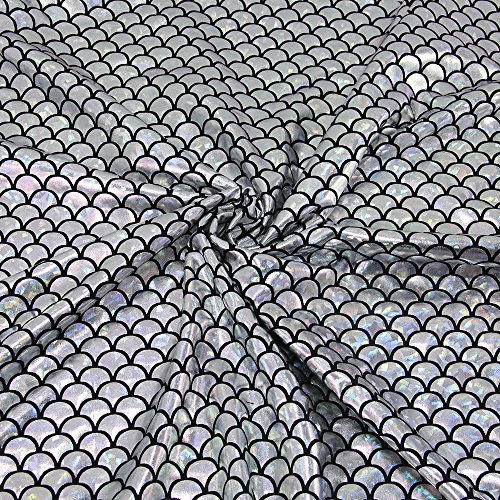 Mermaid Hologram Spandex Fabric Fish Scale 4 Way Stretch Laser Knit Cloth 58" Wide Sold By The Yard (Silver)