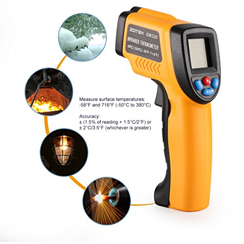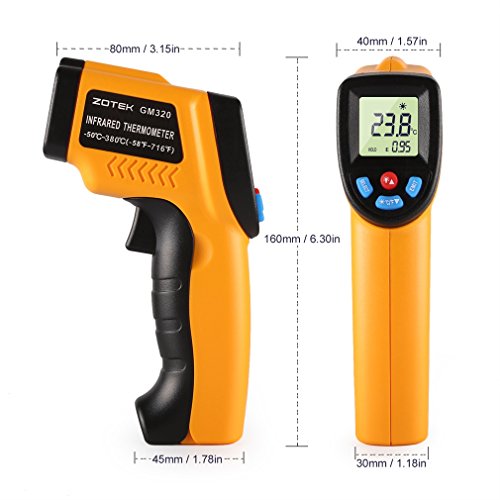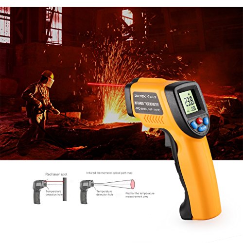 Infrared Thermometer,ZOTEK G320 Compact Laser Digital Infrared Thermometer -58°F and 1022°F Accurate Adjustable Emissivity with LED Backlight Display Laser Target Pointer
