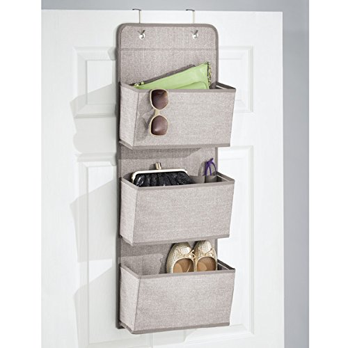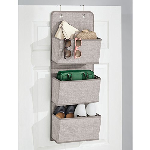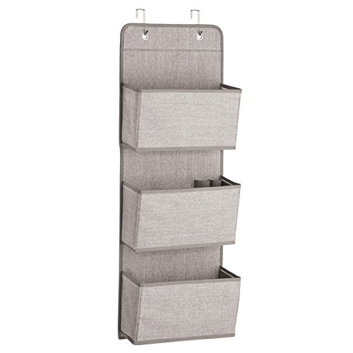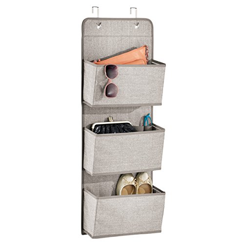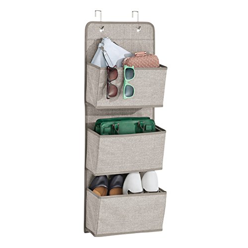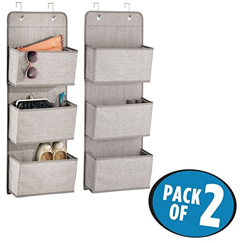 mDesign Over the Door Fabric Closet Storage Organizer for Purses, Shoes, Sunglasses - Pack of 2, 3 Pockets Each, Linen