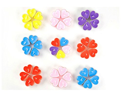 Product Description New style candle,good playing goods for fun. Note: for safety ,do not let your children come aclose the candle for getting burnt. Set of 9 heart shaped tea lights 0