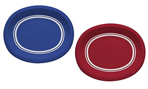 Red and Blue Oval Plates, Patriotic Colors, 20 Large Plates