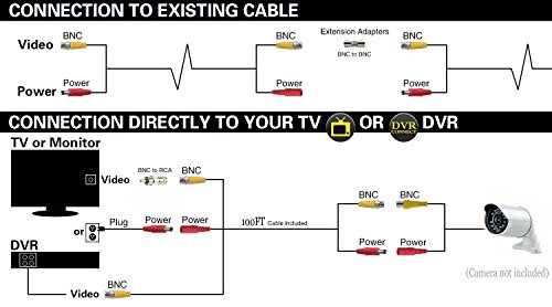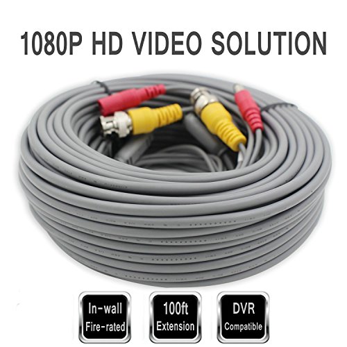 FOCUSHD 100Feet Video Power BNC Cable In-wall Fire-rated CCTV Siamese Copper Cord Premade BNC/DC Connectors For 720P/1080P Camera DVR Surveillance System-Dark Grey