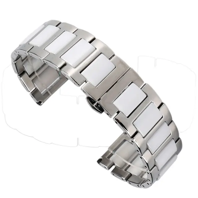 | [해외]고품질의 스테인레스 스틸 및 도자기 디자인 줄 18 미리메터 20 미리메터 시계 스트랩 푸시 버튼 숨겨진 걸쇠 + 2 봄 바 |