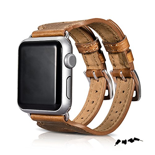 -. Feature : 【最高峰本牛革】最高峰の革を採用。高級漂うビンテージレザーで、丈夫で柔軟性も高く、原皮の持ち味を一番堪能できる愛着も湧きやすい革。ダブルストラップでファッション性を演出。 / 【快適な使い心地】熱を逃がし、着けていて心地よい構造となっています。バックル部分とアダプターはステンレス製で長持ちし、長時間着用するのにも適しています。 / 【ラインナップ】42mm用、38mm用の両方をラインナップ。カラーは2種類の個性溢れるデザインからお選びいただけます。 / 【デザイン】ビジネスでもプライベートでもシーンを選ばず、AppleWatchを更に美しく飾り立てる洗練された高級感のあるデザイン。 / 【SmartCase Anti-Dust Plug Caps 付属】iPhone本体を湿気やホコリから保護。Lightningとイヤホンジャックのキャップが2セット付属。