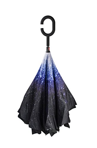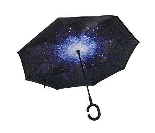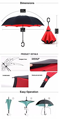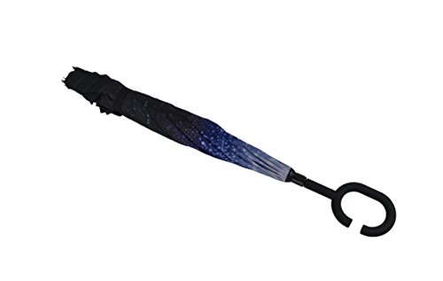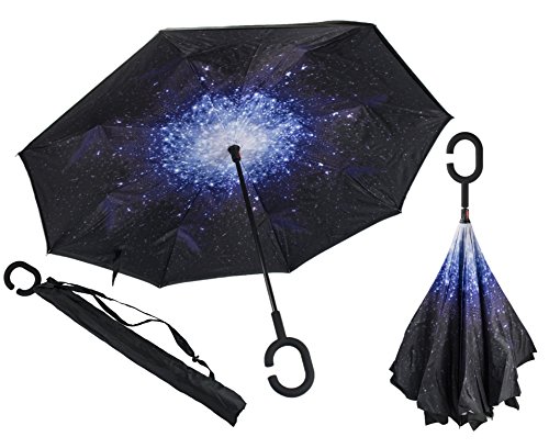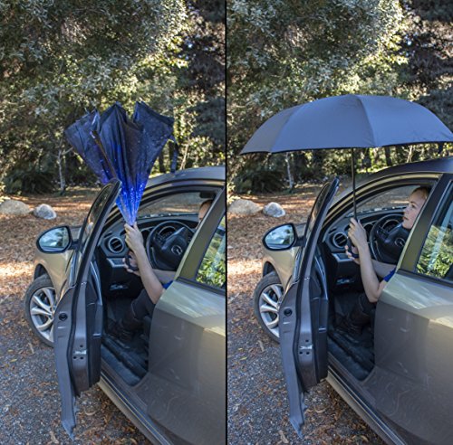 -. Feature : DRY ENTRY AND EXIT: This clever design allows you to open the umbrella over the car door to keep you dry, and close it after you are in the car and the door almost closed. You don't need as much space to open it, so you will stay dry. A great improvement when compared to old-style umbrellas. / REDUCED DRIPPING: Closing the umbrella leaves the dry layer outside, protecting your car, clothes, bag yourself and others from drips. / EXTRA PROTECTION: The double layered design also gives extra protection against wind, rain and even UV light. / EASIER TO CARRY AND STORE: The C-shaped handle is comfortable and could allow you to use that hand for other tasks. The carry bag and strap provides a more convenient way to store or carry the umbrella when not in use, e.g over your shoulder. Can stand on the floor on its own once folded, when there's nowhere convenient to lean it. / A THOUGHTFUL GIFT: Buy one as a unique and useful gift for your loved ones.