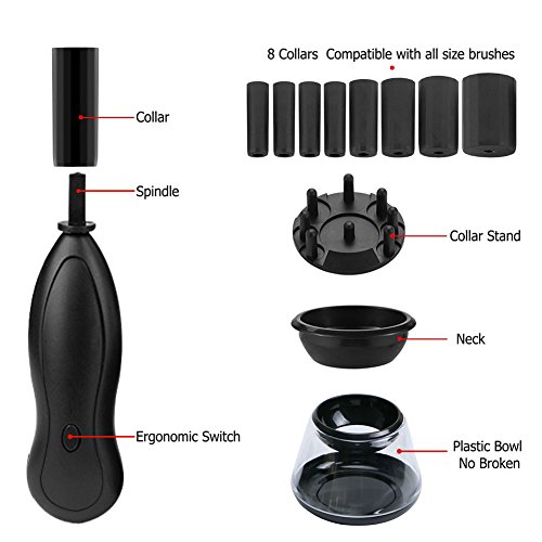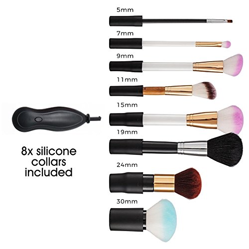SUITABLE FOR DIFFERENT SIZES - 8 silicone collars in difference sizes are design for most of makeup brushes to fit this electric cleaner.