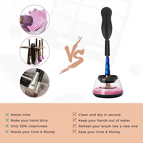 HYGIENIC & ECONOMICAL - This automatic brush cleaning spinner helps wash off old makeup, dirt, oil and bacteria on your makeup brushes to prevent skin problems.Make your favorite brushes maintain a soft, nice shape and last longer.
