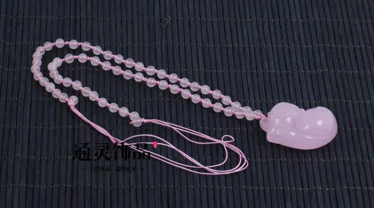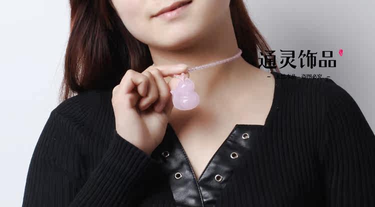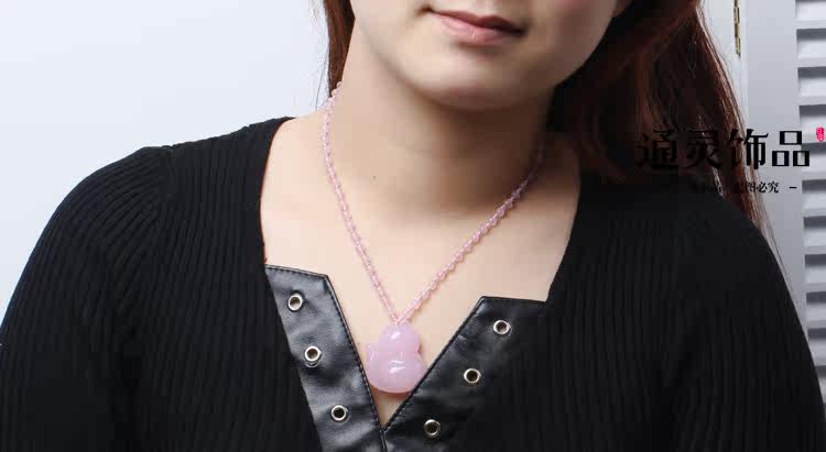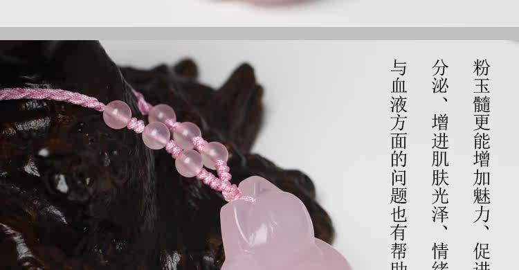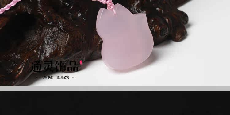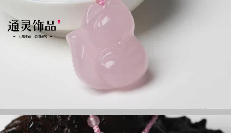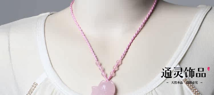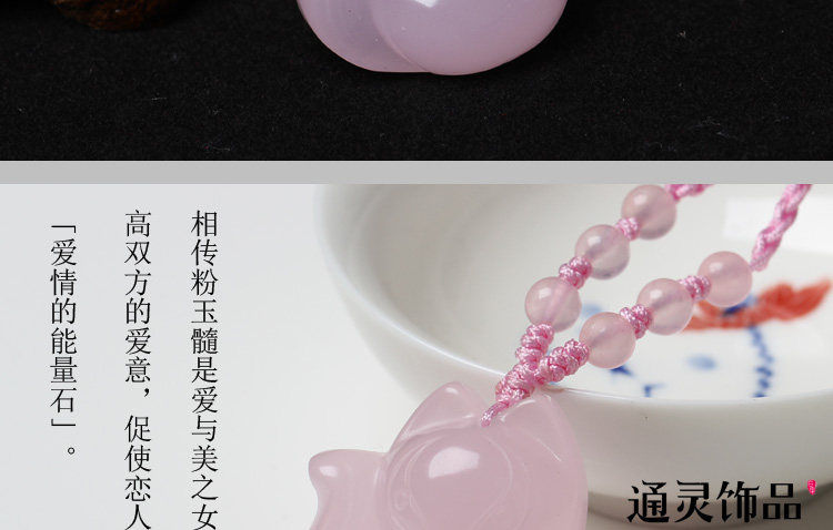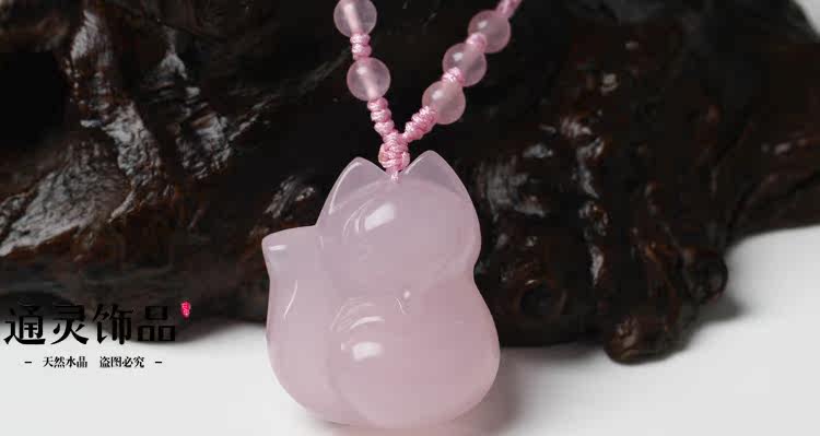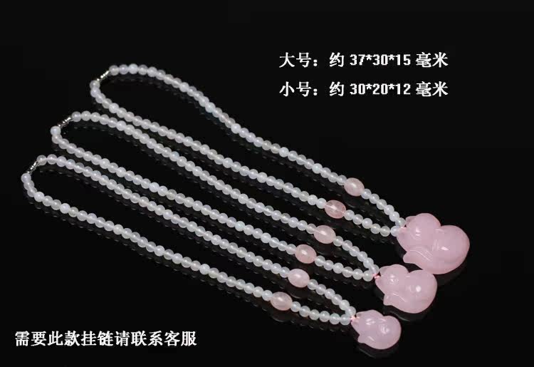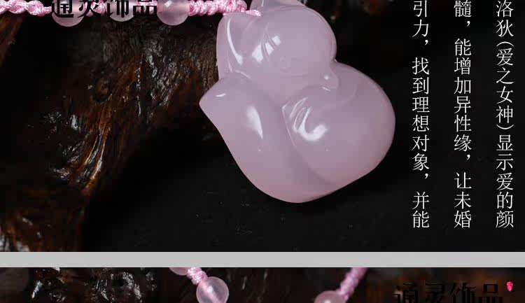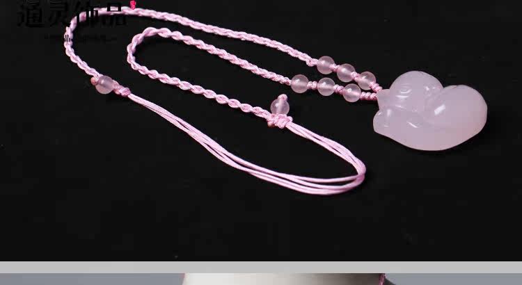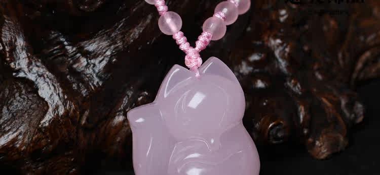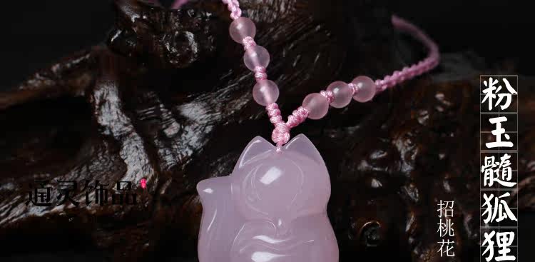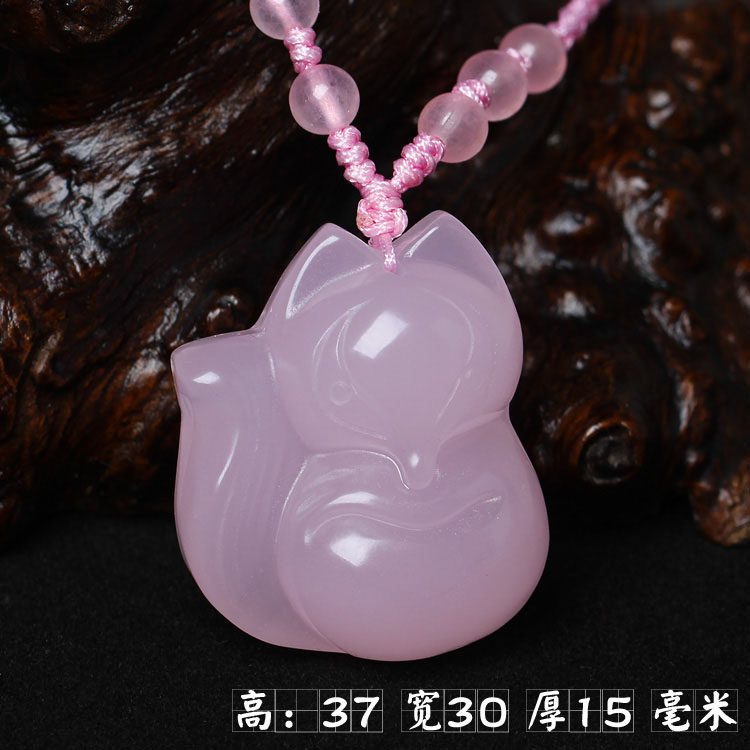 开光天然粉玉髓狐狸吊坠女项链 粉狐狸水晶挂件饰品 女生日礼物