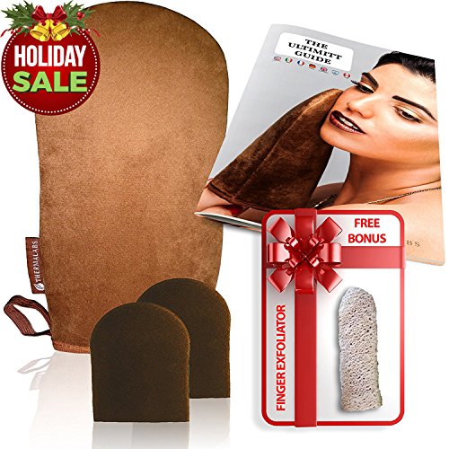 -. Title : Ultimitt: Luxury Applicator Mitt Self Tanning Pack for a Smooth Sunless Tan. Tanner Lotion Applicator Glove Set w/ Finger Bound Exfoliator, Reusable Self-Tanner Tools Kit for Back Legs Body & Face
