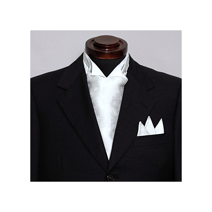 원본상품명: (オジエ) ozie【アスコットタイ&ポケットチフ】絹シルク100%ジャカド織ペズリ柄日本製 シルバ